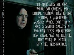 3 Answers. ‘The Dark Arts,’ said Snape, ‘are many, varied, ever-changing and eternal. Fighting them is like fighting a many-headed monster, which, each time a neck is severed, sprouts a head even fiercer and cleverer than before. You are fighting that which is unfixed, mutating, indestructible.